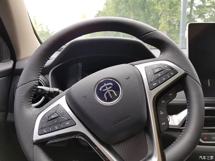 比亚迪内饰和外观一样都是很亮眼,做的也是非常的良心,就这个真皮质感的方向盘,看着就非常有质感,握着也一样,方向盘上操控按键也不错,方便快捷。