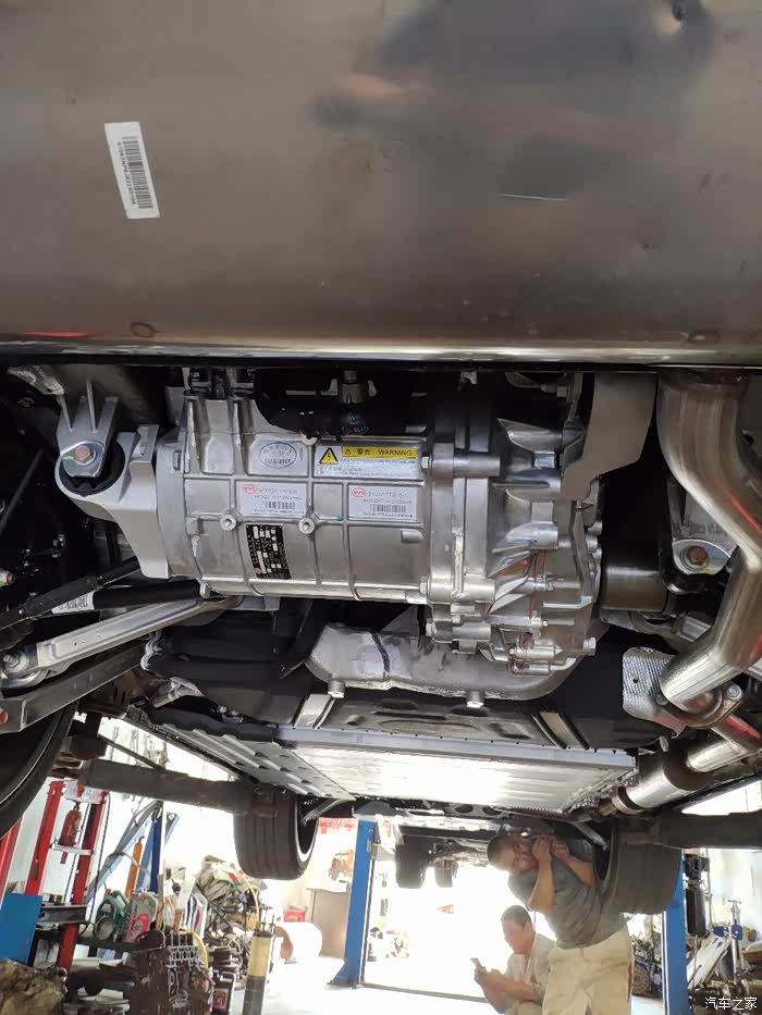 这个是安装发动机护板的时候拍的,很多件都是铝的,用料超足,但是后副车架是焊接拼接的?