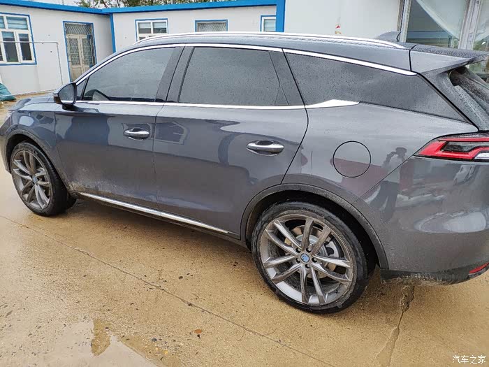 这张图有点把车照丑了,但是不要紧,我主要是想说下这个车身和这个22寸的轮毂真的好搭,不要怕爆胎,没那么严重,要是选20寸可能就没这个气场了。