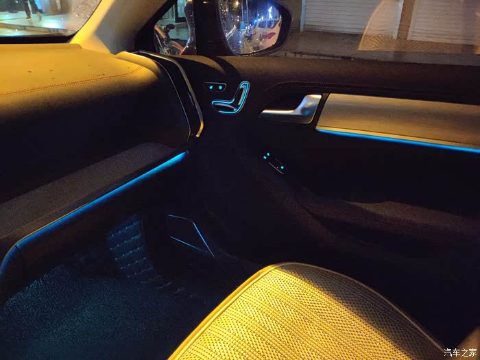 这氛围灯效果可以啊,挺有豪车范的。(请忽略我的坐垫,实际没这么丑