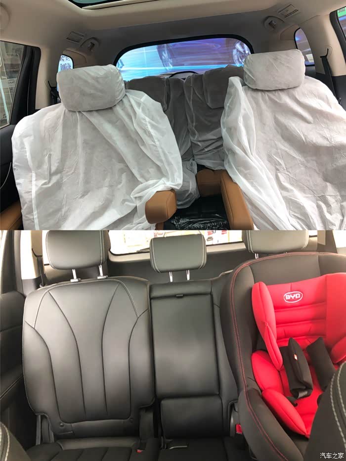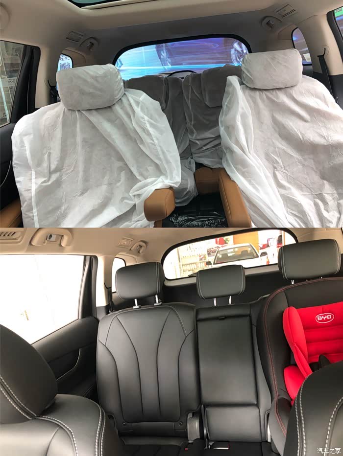 这里双色的六座棕色和黑色搭配比较抢眼!(销售说是棕色,在我眼里其实是黄色和黑色)但是全黑七座也是比较耐看的!