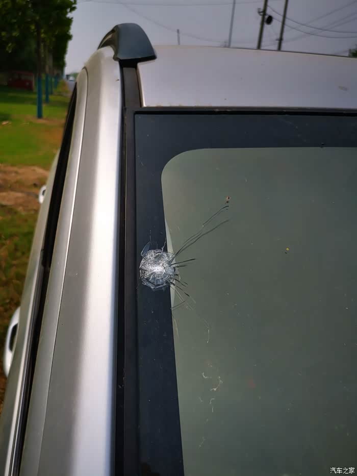 一大早出门,不知道从天上掉下什么东西,把玻璃干碎了。
