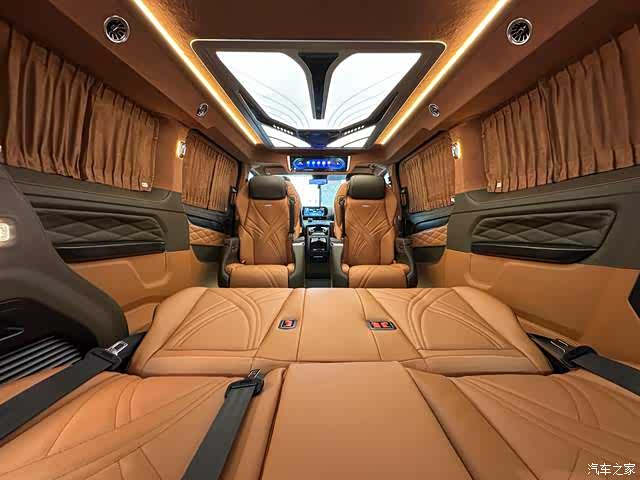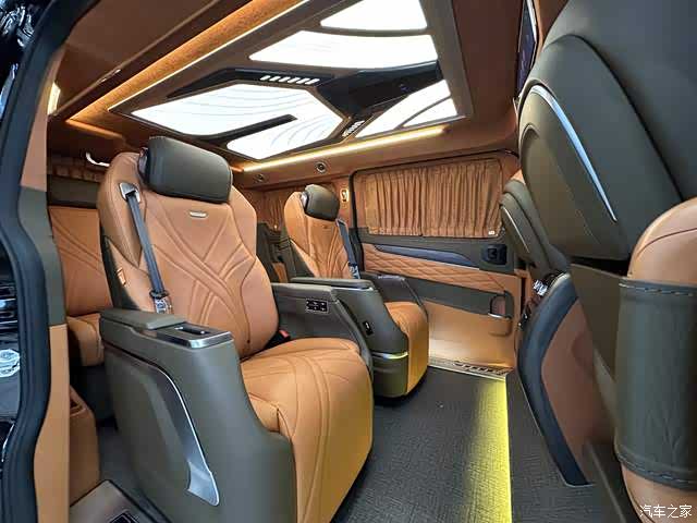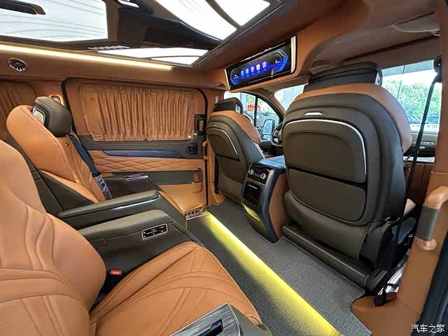 同样5米的车长,蓝牌c本,2米的车宽,2米顶高,限高2米的地库也能下的。外观同样都是立体的LOGO,蜂窝状进气,六边形包围,倒钩大灯动力也是一样的2.0T汽油匹配了9 AT变速器以及空气悬挂,带底盘升降。当然它有柴油版可以选。和追光版的第一个区别就是轮毂换成了16寸的小轮毂,第二个就是来到了咱们的内饰,顶灯换成了经典的高达造型顶灯以及麂皮绒包覆的顶棚。