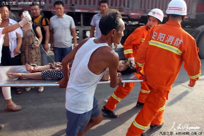 2013年8月9日上午7时25分,在河南省安阳市安阳县曲沟镇安林路段,一名11岁的小女孩被一辆满载货物重约40吨的挂车卷入车轮下,生命垂危。