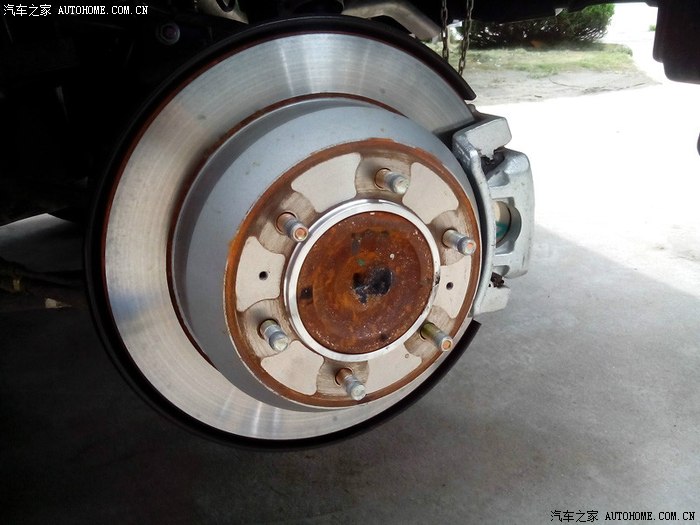 后轮半轴,才一个星期就上锈了,那道亮环就是变径圈。虽然h5轮毂固定用的是锥形螺丝,具有定位和承载功能,但我还是觉得变径圈来得放心。