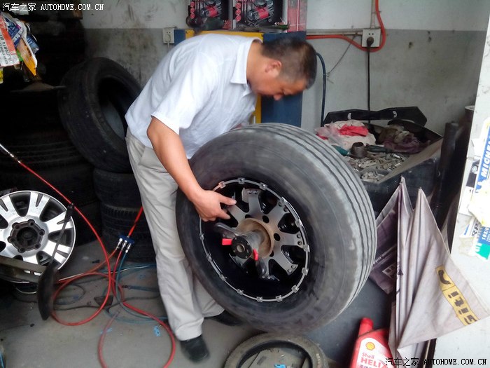楼主按耐不住,亲自上场,所以照片较少。由于原车带胎压检测,得拆一个装一个,前后左右的轮胎位置不能混了,不然报警会出错。