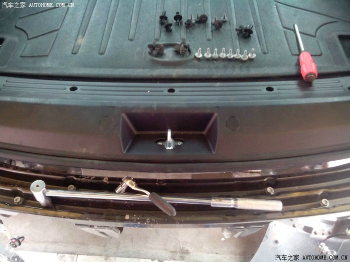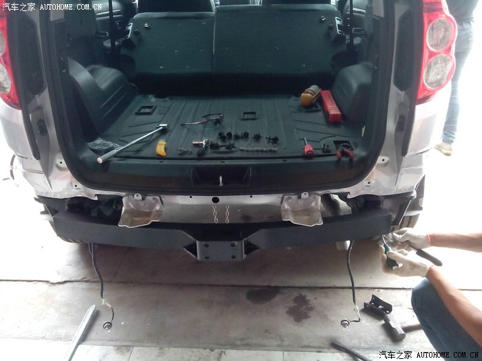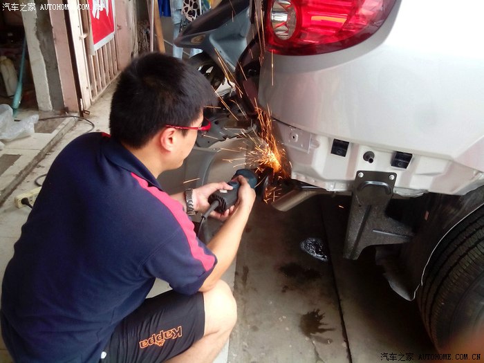 老板在安装侧杠,楼主我也不闲着,一个人就把哈哈的后包围给卸了。