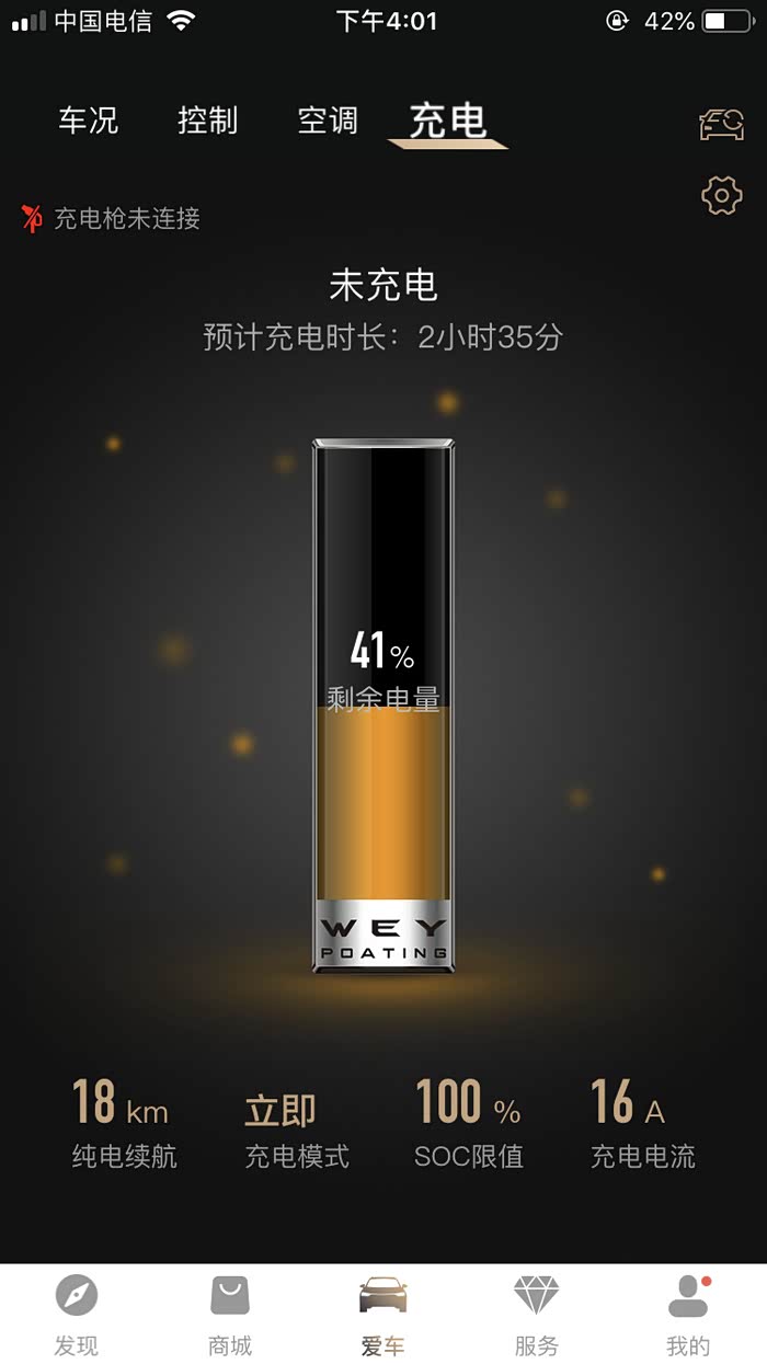 多说一句,为什么电池剩余41%是18公里那?P8电池消耗是这样的,当续航显示为零的时候,电量剩余15%。电池设计不允许你开到零。即使强制纯电继续护航,电池剩余5%是不让用的。实质上P8只要有油就会有电,在自动模式下,电量保持在15%。所以官方标定12.9度电,续航50公里,而剩余的15%也在这12.96度里面的。