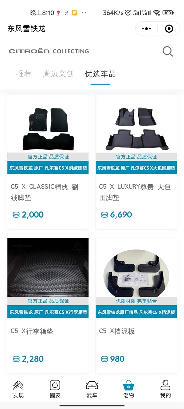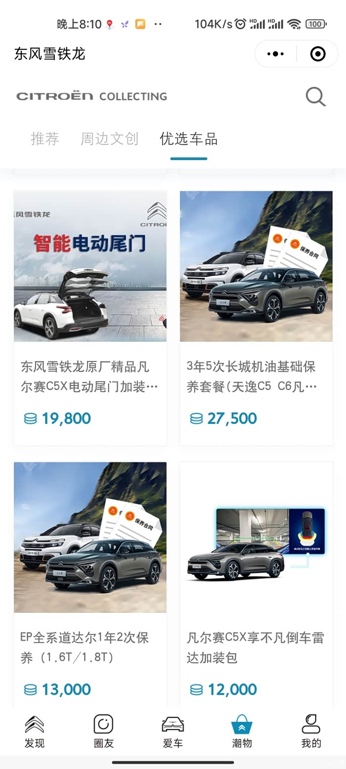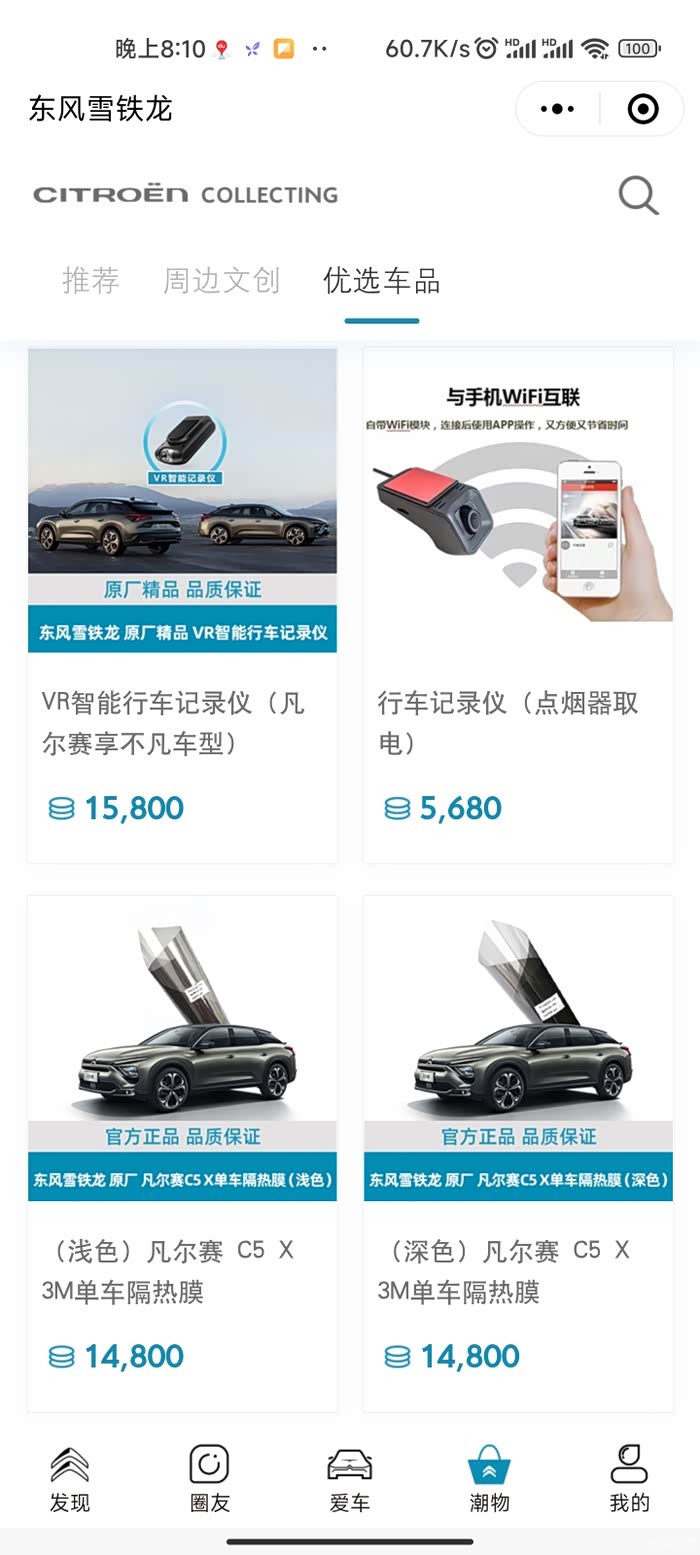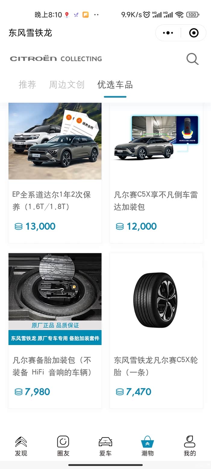 (2)东风雪铁龙推出共享积分,让盲订和前2万名车主享受销售成果(共享积分),且积分可以在商城里兑换各种车品和生活用品,非常实用。