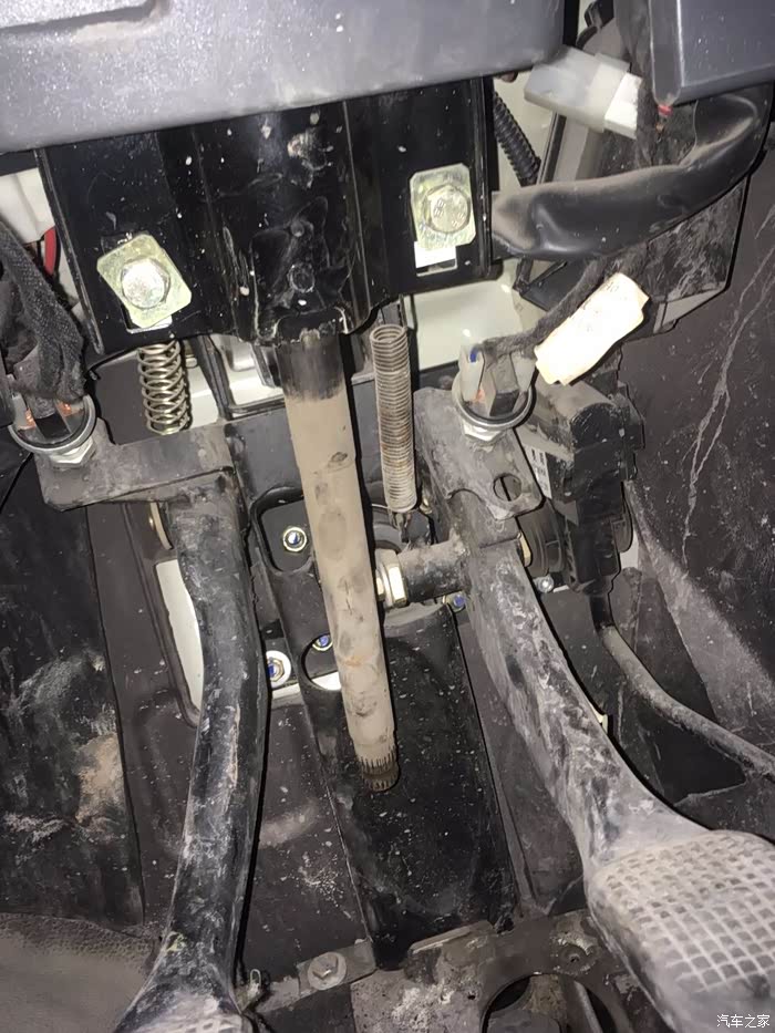 松掉这两颗螺栓,方向盘就很松的能提起来,拔掉十字节