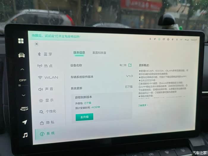 看论坛上的车友说二狗的升级已经开始推送了,就想着我的二狗啥时候能收到推送,赶快升级去感受下新功能带来的感受。