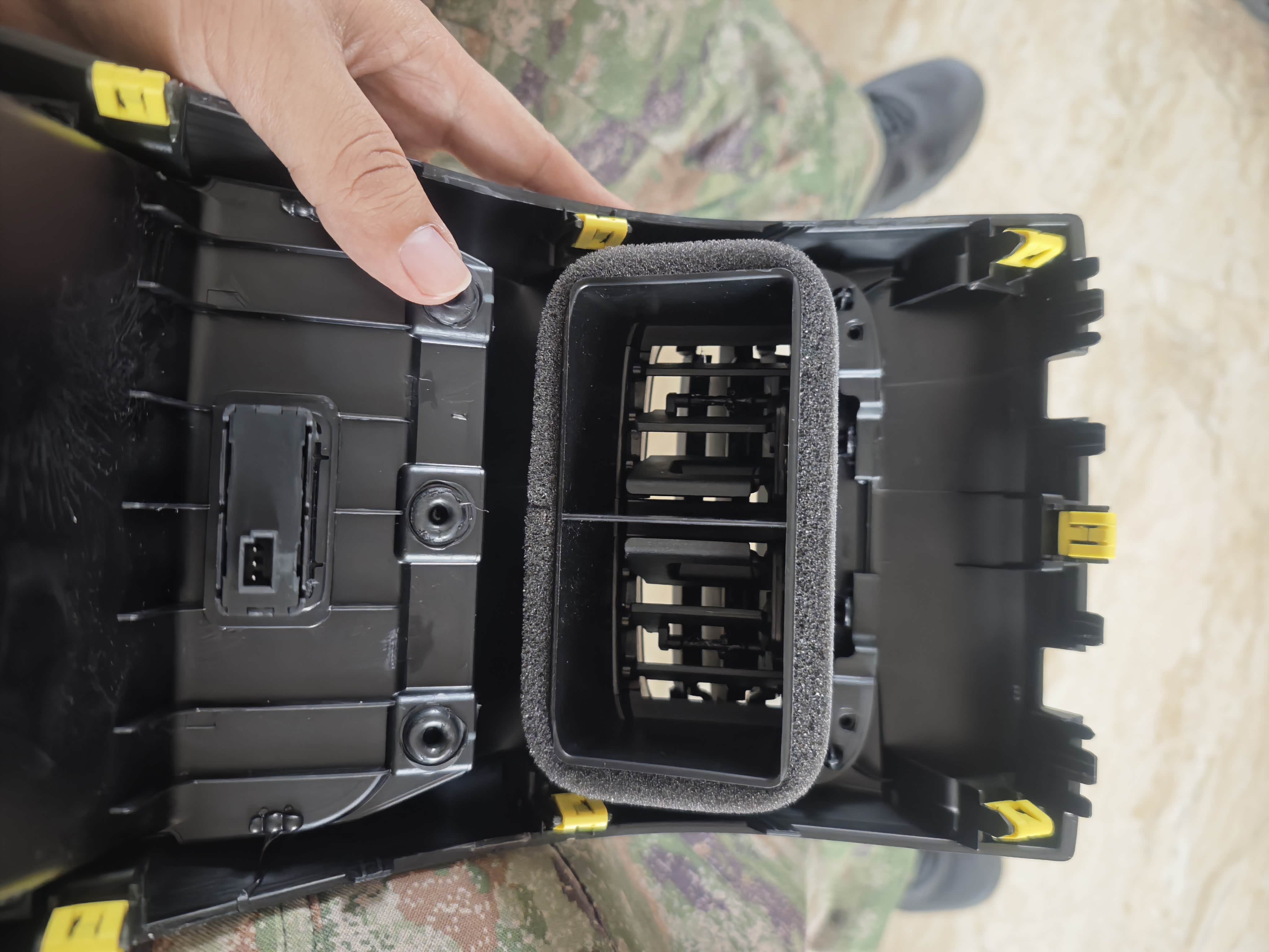 把原车上的储物盒拧下来,安上出风口