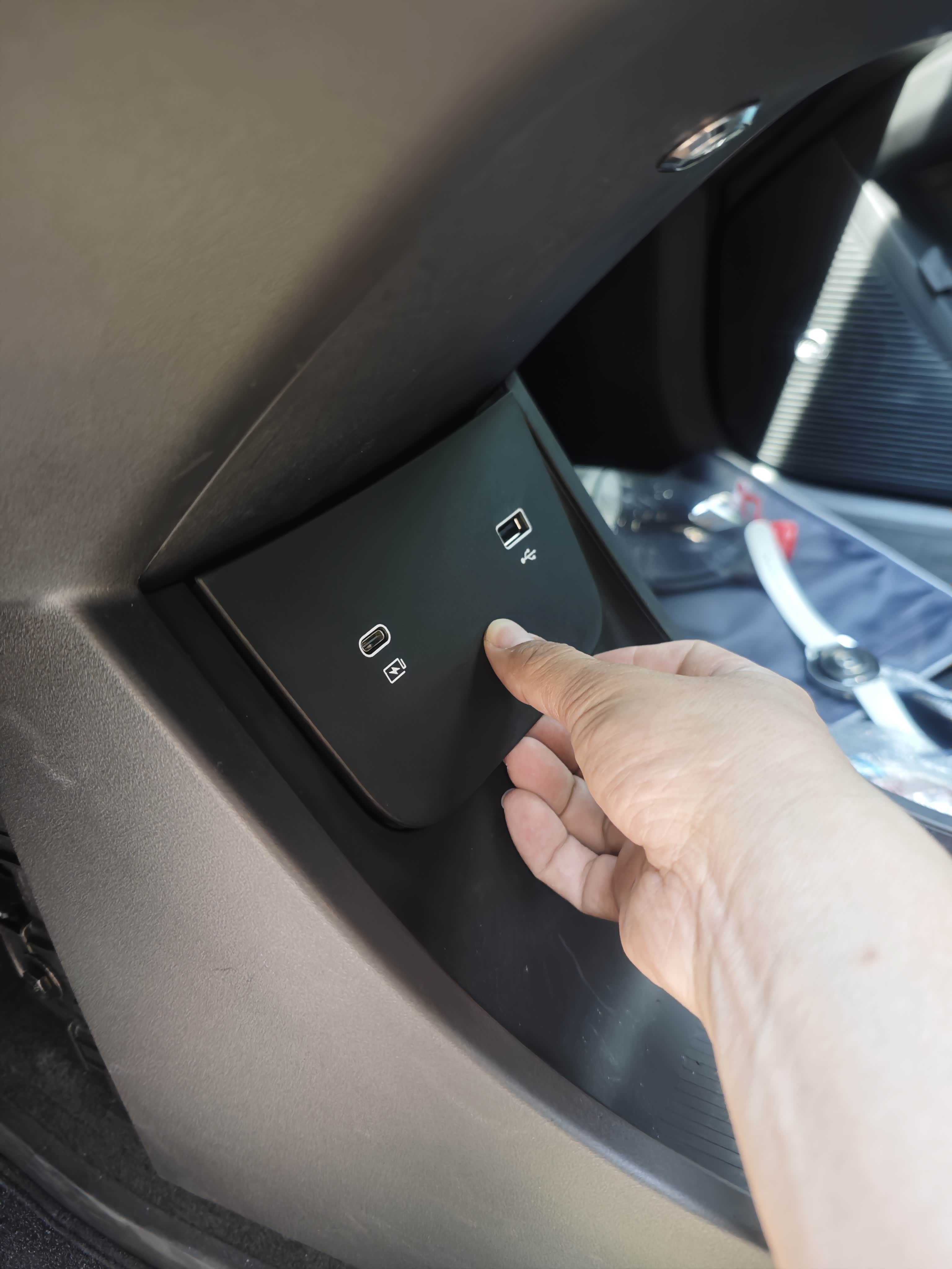 拆充电面板,两侧的饰板拿下,用手顶一下,四个卡口,拿下,记得把线拆了