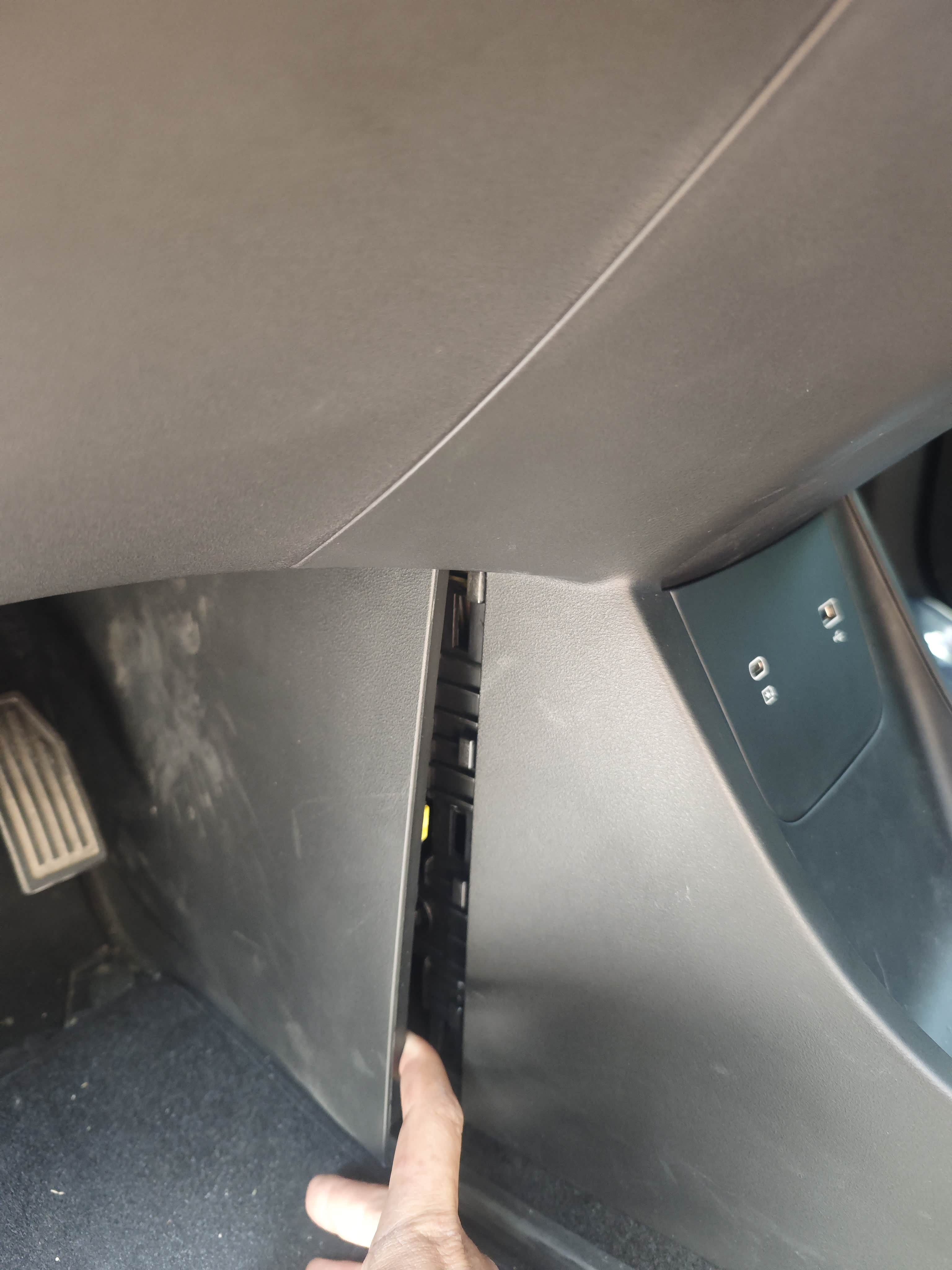 主副驾驶下的饰板,靠近座椅的一侧是卡口,三个,拉开,就可以拿下来