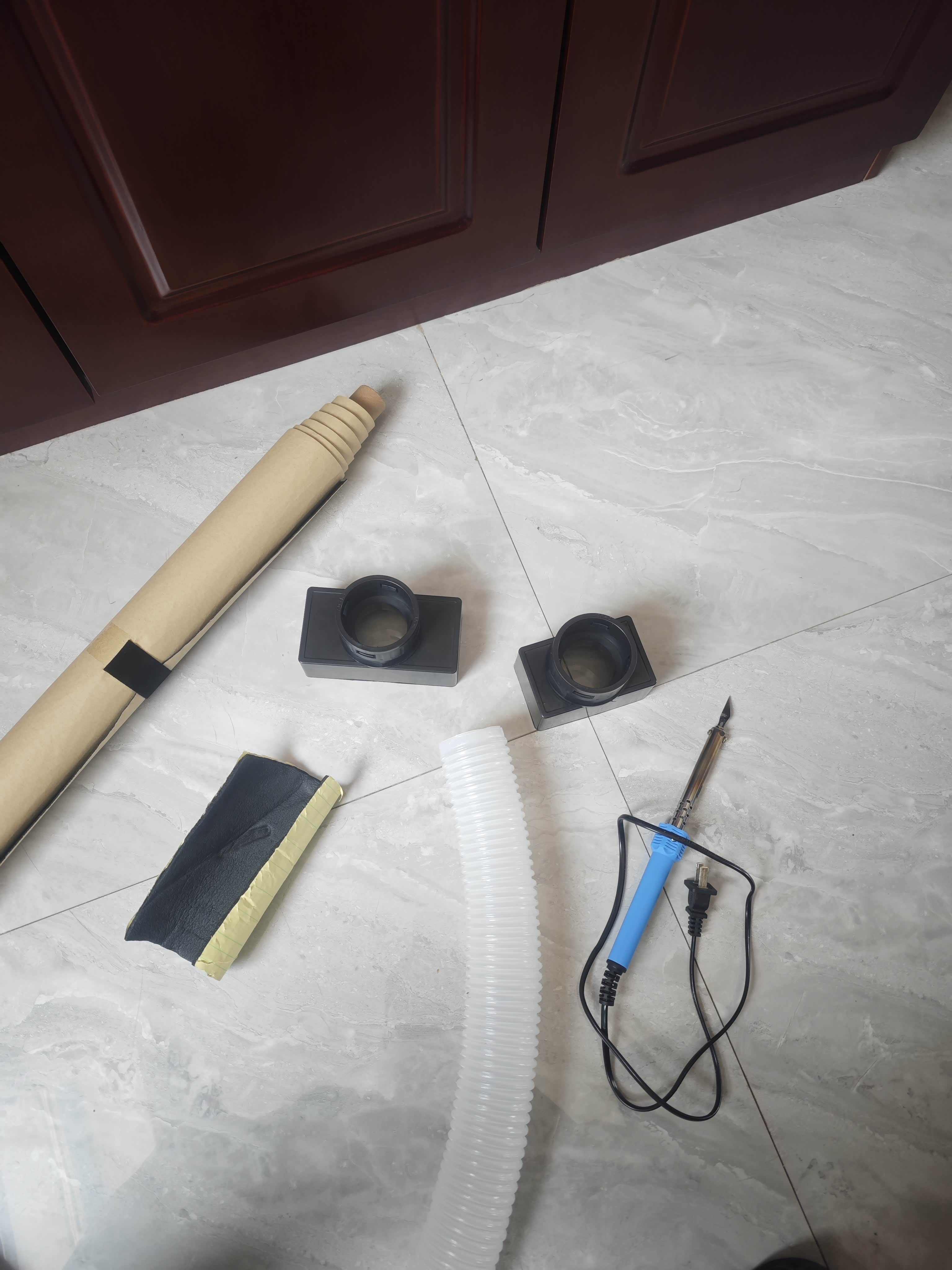 先上材料,风管、风管风口连接盒(自己做的)、风口(安到饰板上了)