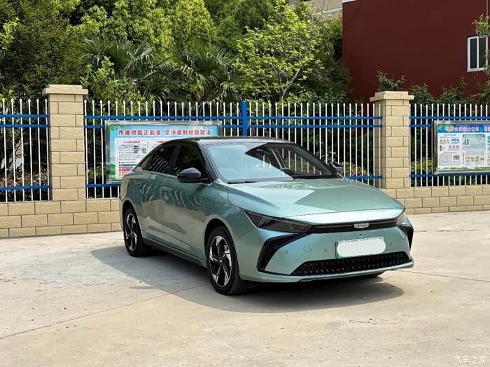 几何G6的外观不用多说了,真的好看。绿色的车身颜色在一众的黑色、白色的车中脱颖而出,比较有个性特别。