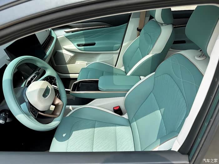 几何M6的内饰也蛮不错的,车内是白色和绿色双色拼色组成的,看着蛮清新舒服的。主要是车内的触感很不错,坐进车后,能明显感受到座位下陷马上又开始回弹,坐着挺舒服的。这种座椅就算是长时间久坐身体也不会感觉不舒服。