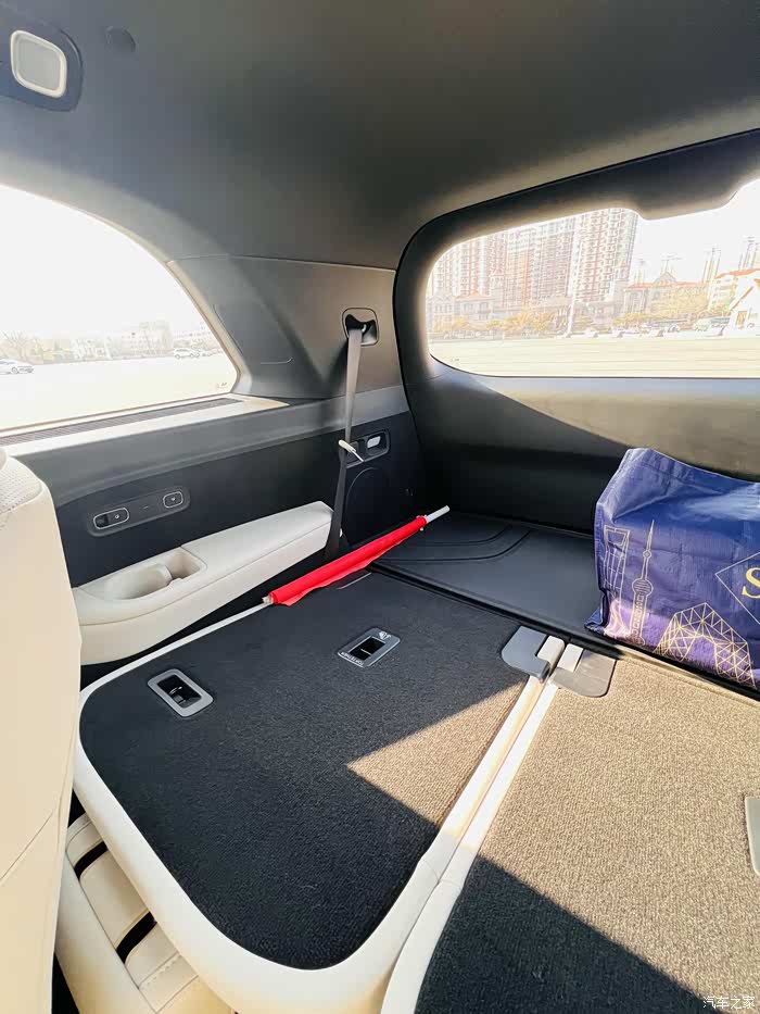 平时三口人的时候,基本都是四坐状态,第三排放平,二排移到最后,后背箱巨大