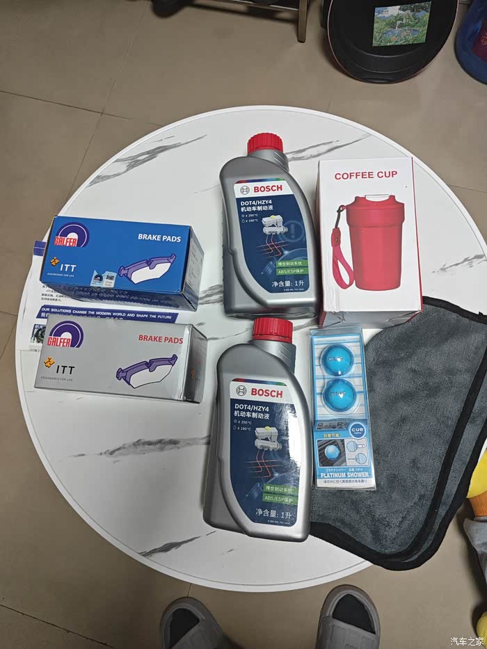 然后就是预约他们的合作点施工,这种活对于师傅来说应该就是小菜一碟,一个吧小时就全搞定了,由于我5万公里的时候更换过刹车油,这次虽然送了刹车油但我也没换。留着下次吧。更换结束后,由于换后刹车片需要解码,收了50解码费,也能理解吧,好像现在这种电子手刹的都需要单独解码。