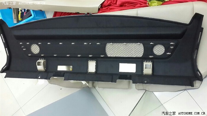 拆下的后挡下的面板,无味,可以看到预留了重低音和环绕出口
