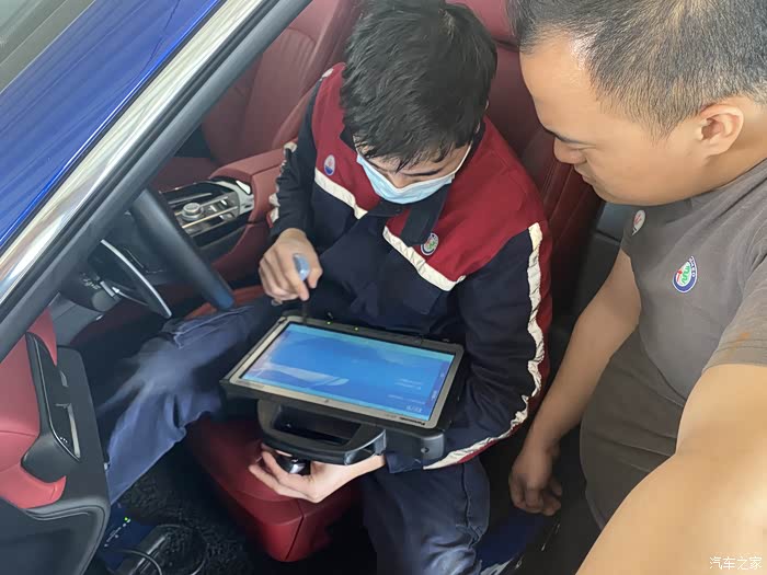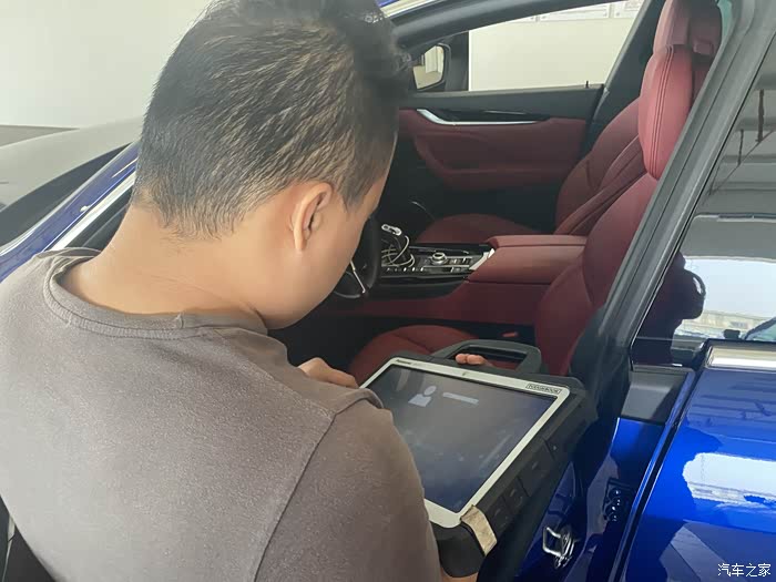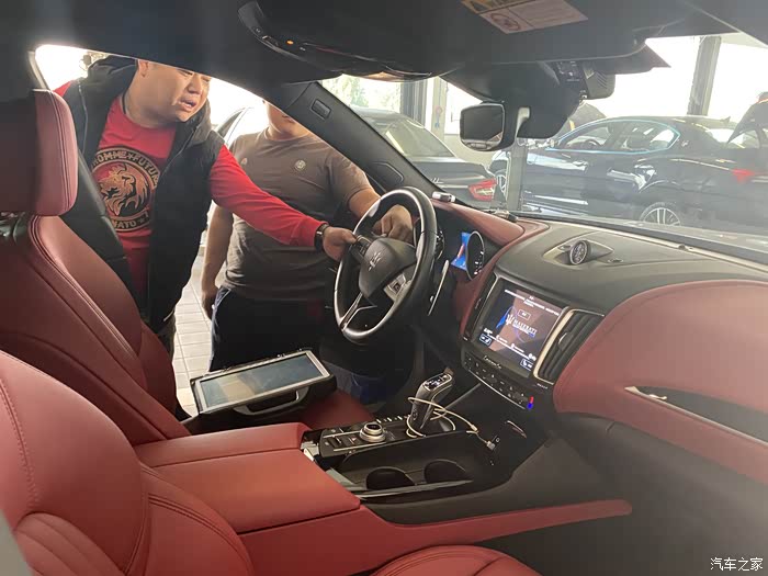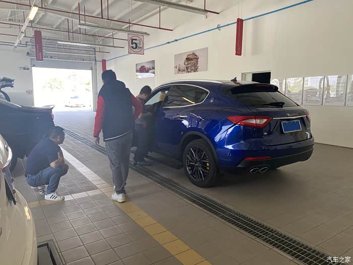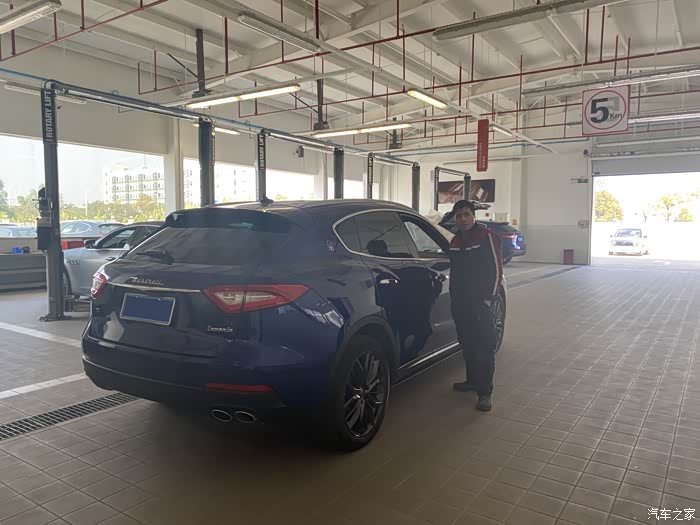 店面在汽车街内,4s店很多,第一次去玛莎拉蒂售后的话还挺难找的,要雷克萨斯门口进去,玛莎拉蒂售后就在雷克萨斯正后面。 刚将车开到售后门口,服务顾问就出来迎接了,还细致的用专业的套子套了车座、方向盘、挂挡,铺了纸脚垫。细心的进行了初步预检,根据行驶路程、时间和车目前的状况做了首保检查,开了张进场车辆工单。就把车辆交由售后维修技师啦。技师根据工单开始进行作业维修项目。