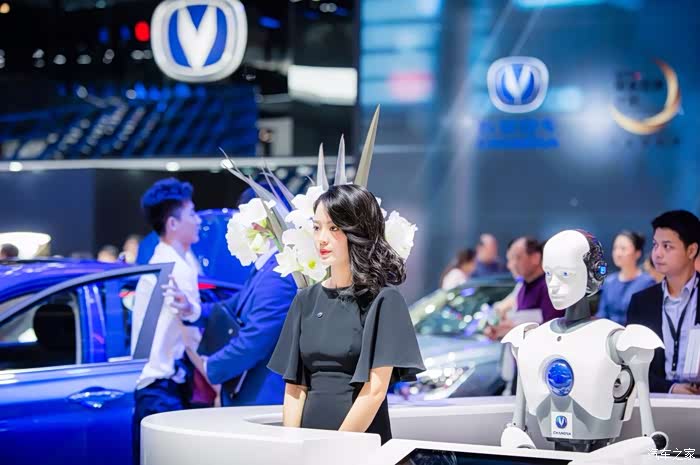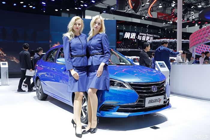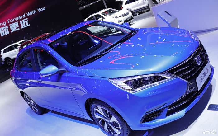 来张正脸,上面的就是长安展台今年的新品了,中间的不是逸动DT嘛,哎哟喂,这灯光打在蓝色的车身上,让人立马眼前一亮啊。