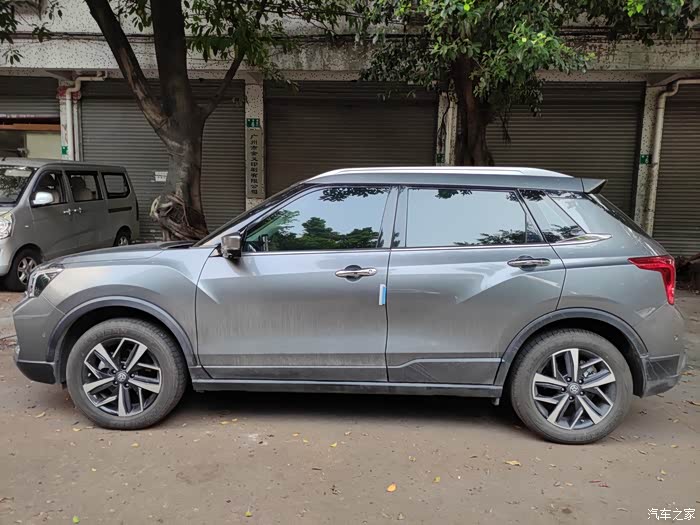 启辰T60EV腰线硬朗,双色轮毂造型优雅。灰色的车身配上银色的车顶行李架,仿佛给爱车戴上了一顶银色的贝雷帽,帅气而优雅。