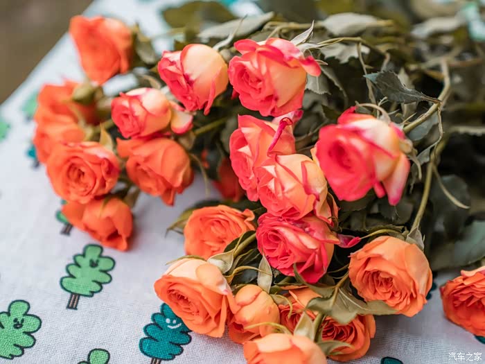 到达目的地后将车子停在路边,在宽敞的后备箱中拿出露营座椅,一席绿色碎花桌布置于其上,再拿出在花店精挑细选的花束、花篮和花泥,工具只需剪刀、胶带和矿泉水即可,接下来就看我表演吧各位!