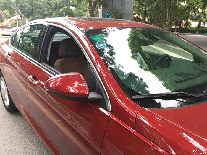 厦门海翼泰成别克的小尧是个好姑娘,早早就给洗好车等着了,是个服务很不错的女孩子,她见到我第一句话就是姐,我知道你等很久了一早就给你正好车让你一来就看见,呵呵,在这里也非常感谢。看到车的第一眼,就觉得确实没有辜负我1个多月的等待。热情奔放的正红色,双眼皮大眼睛,犀利,精神,车身流线动感富有张力,扁扁的车身,很上档次。进车里一看也是很满意的,棕色内饰,但是不得不说这个内饰是满意但还少了那么一丢丢的惊喜。车内的空间对我而言足够用了,仪表盘很动感,满眼都是喜欢,车前挡上抬头显示开车方便更安全,还可以炫耀,很赞!另外这车还有很多高大上的配置,大灯延时关闭,安吉星有无线信号,智能互联,还可以链接手机映射,不过这些我还没记住怎么用,以后慢慢磨合。