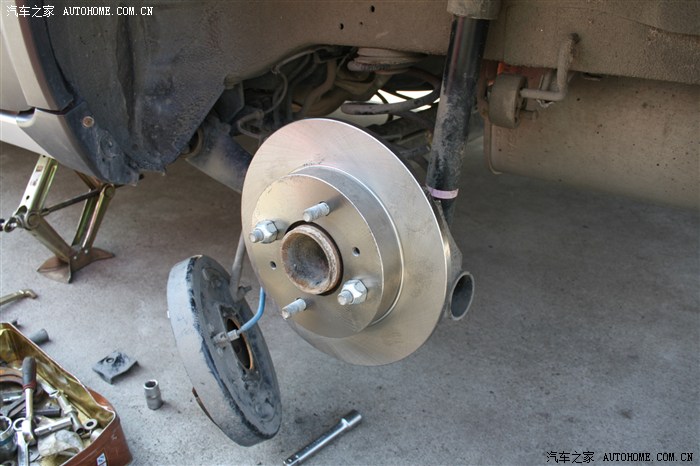 朋友购买骊威一年多,有一次借我的四碟小车开了后,就吵着要把骊威也改成四碟,经过测量设计加工,装车上路,一次搞定,小威也有后碟刹了,超爽!改装步骤如下,请大家指导。
