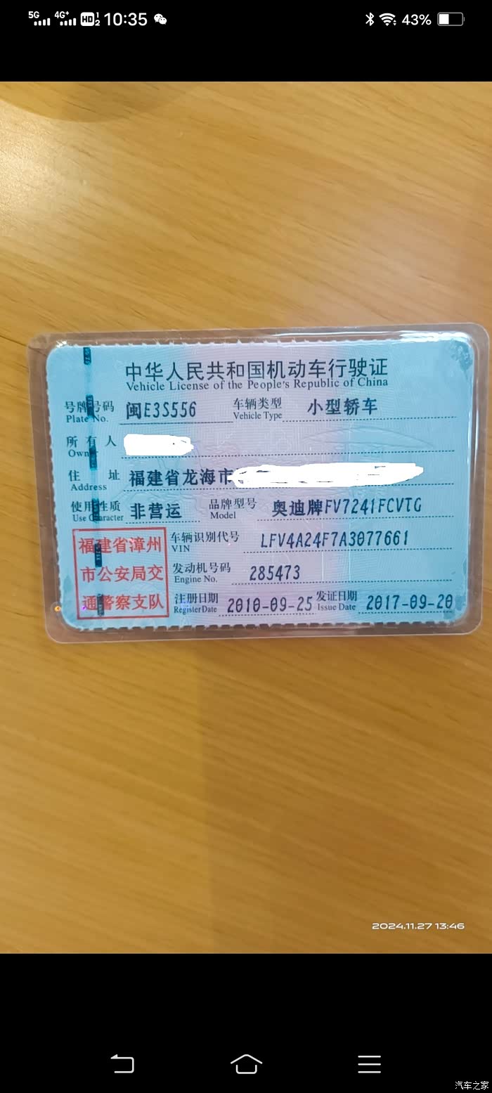 这是期间随机拍照留念的行驶证。