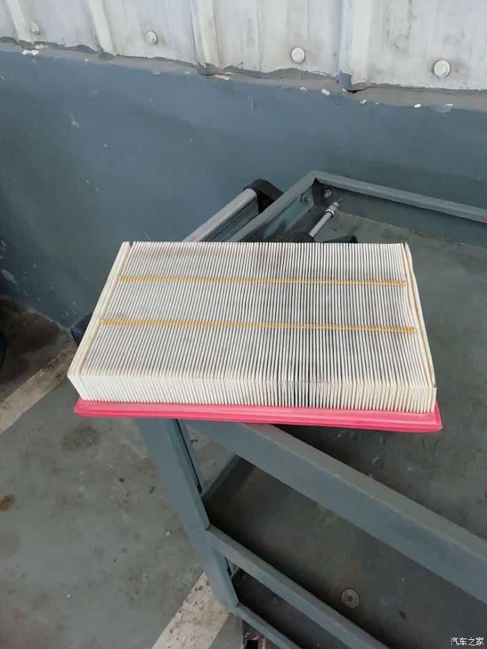 先是擦拭了发动机舱(这个动作很暖心),拿出空气滤芯用高压气流吹干净后装回去。