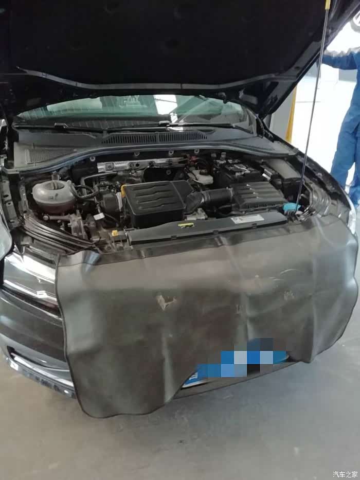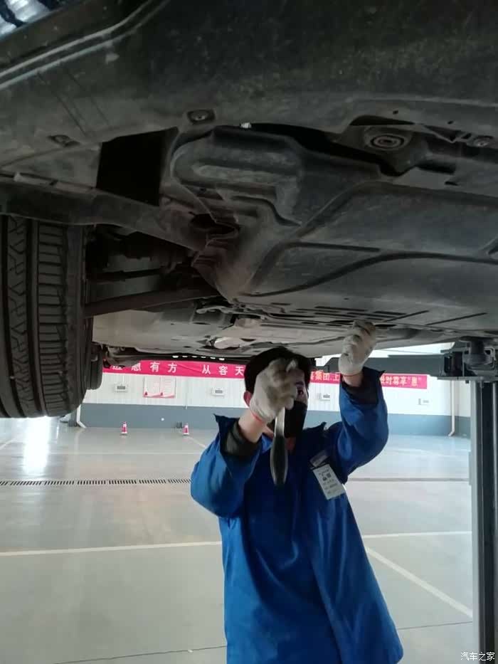 上好发动机护板,降下小朗,加注机油后,发动车子运转了会发动机,停车后过段时间检查机油量,捎带着检查了发动机舱其他部件,整个过程师傅认真负责。