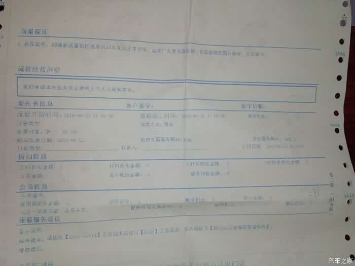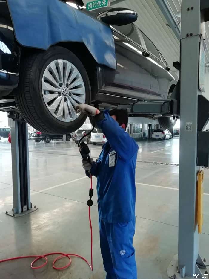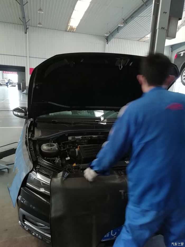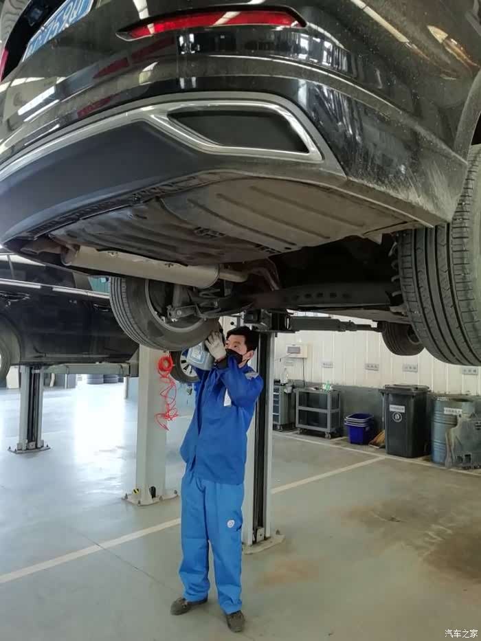 第二天中午午饭后驱车去保养,这次保养是夫人陪同去的,因为保养后有个重要的项目:逛商场、购物。到店后孟女士接待的,因为提前预约,有预留工位,很快铺上一次性防护用品,师傅开车进车间,检查完各项灯光,在车外也铺好防护布。