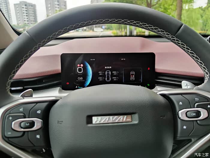哈弗H6在车辆的安全监测这块搭配有胎压和胎温的监测,在驾驶的过程中你就能看到车的四个轮胎的情况,如果发生了异常的话还会提出警报。