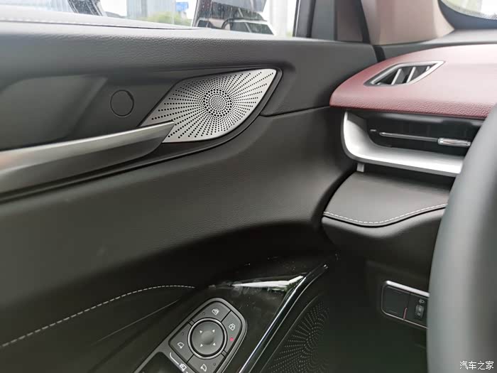 车的四个车门内侧都有一个车载扬声器,可以说在车内就能实现音乐3D环绕的效果。