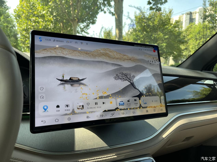 内饰上面也是如此,用料考究设计感强,坐进去的那一刻,就能感受到高级感扑面而来。特别是那块超大的中控屏,操作流畅,换成竖屏刷个抖音,好用!