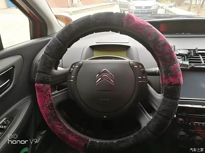 看,另外也给方向盘加了个套,虽然有点胖乎乎,但是这样子你知道我有多么爱护了吧?