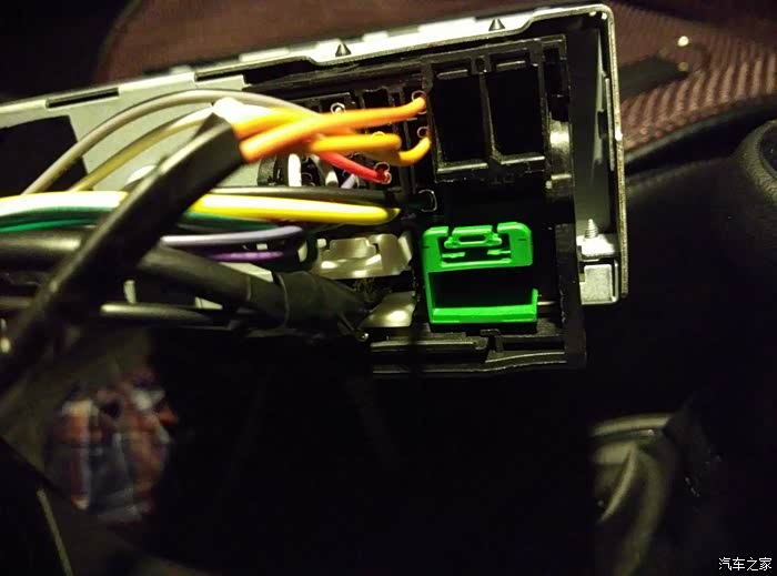 白色的接头就是AUX尾插,接麦克风2pin和AUX输入3pin的,绿色接头这边是换碟机的尾插,没用到。两个插口长得很像,但卡槽有左右区别。