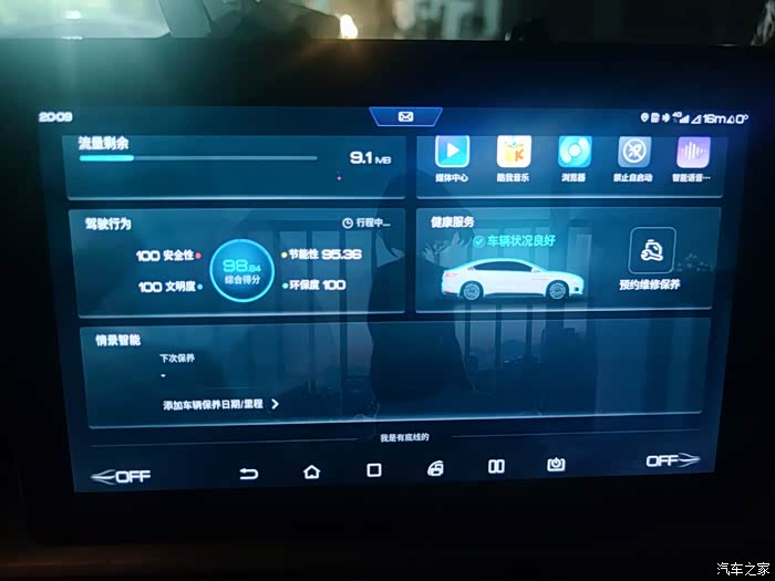 负一屏界面,随着手机app更新,可以扫码登录了,会提示保养时间,保养里程数等提醒,混动好像还有别的显示