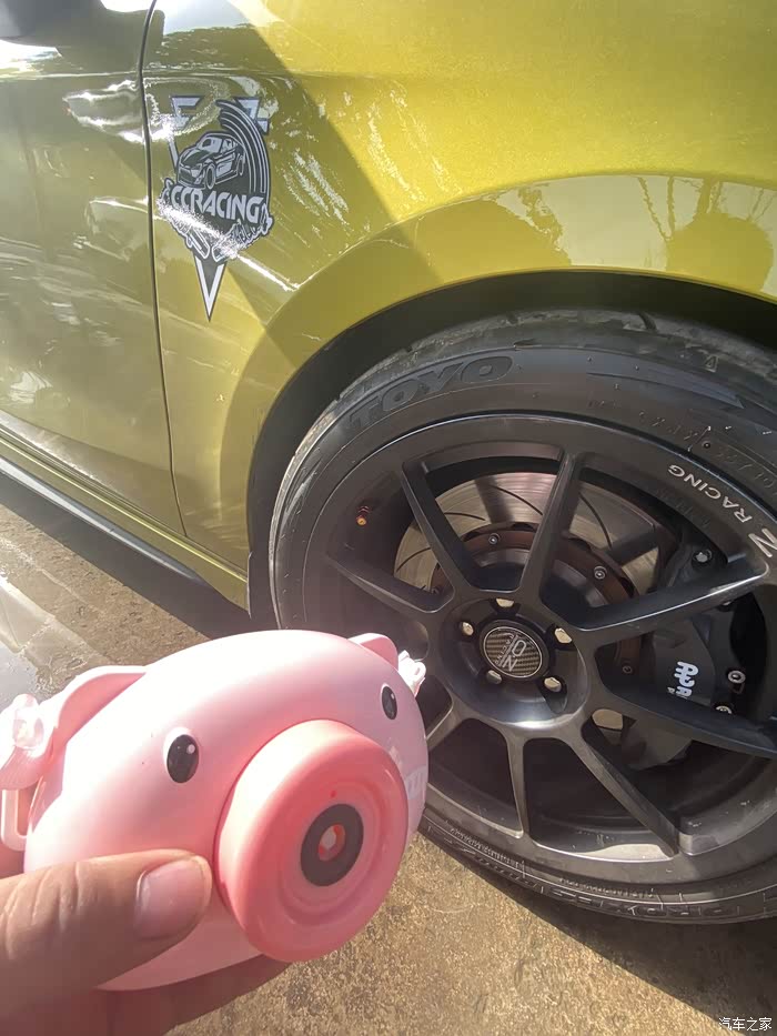 轮胎到货比较快,我当时选择的是toyo的r888r,玩车的朋友应该都熟悉,这胎太出名了,轮胎的实际感受和推荐我放到后面赛道试车再说,这套胎确实是颜值高,在改装圈里也是出镜率很高的一款轮胎了。