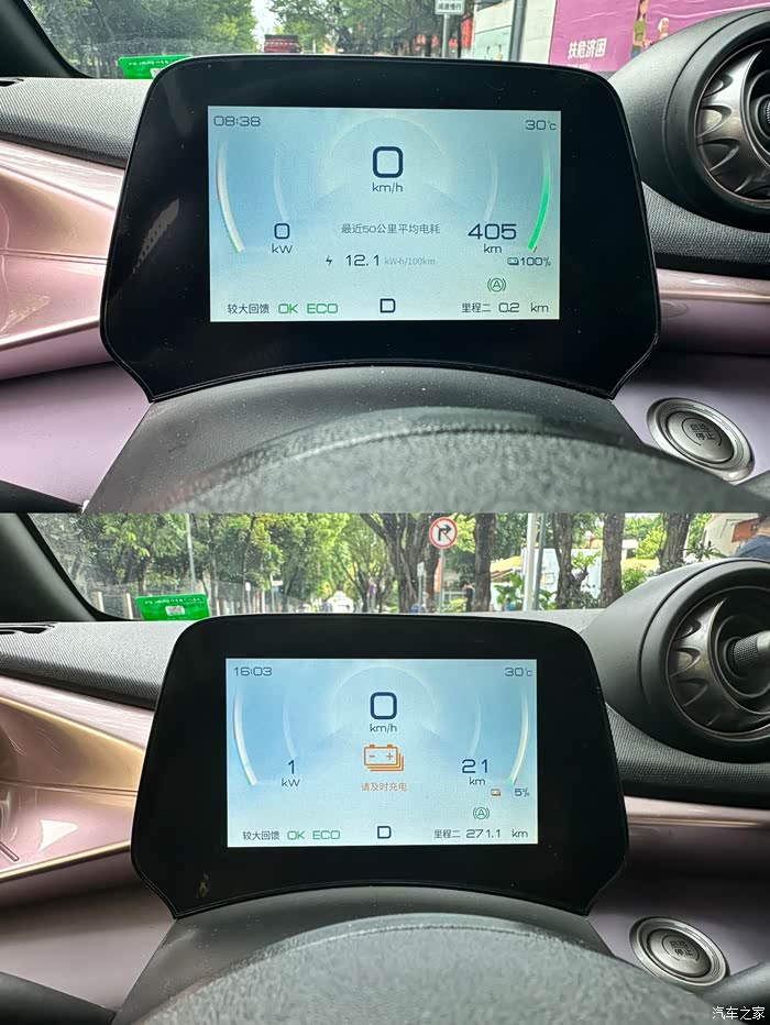 较大回馈+节能模式组合,最终结果是实际行驶271,剩余续航21