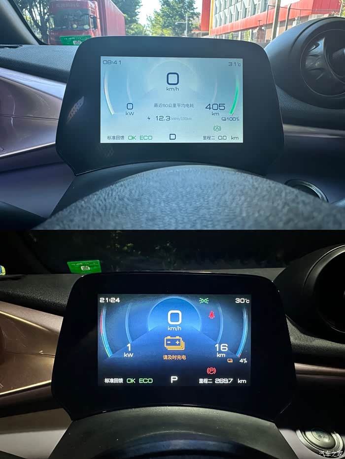 标准回馈+节能模式组合,最终结果是实际行驶270,剩余续航16