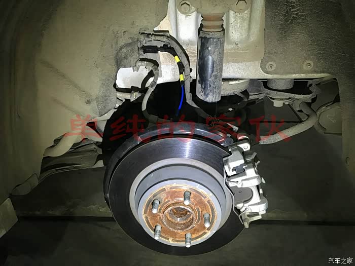 将原车ABS拆下后,换上这根有蓝色标记的ABS线,不知道有什么区别!减震器这里的卡子比较难拆,记住大力出奇迹!