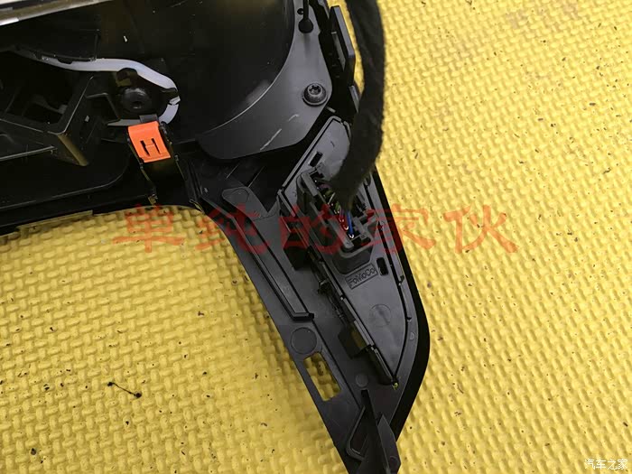 至此,前杠就完全下来了,此处要注意,有3根线连接着,一定要拔下来,不要扯坏,不标注了,拆开之后能看到,左右两边都有。