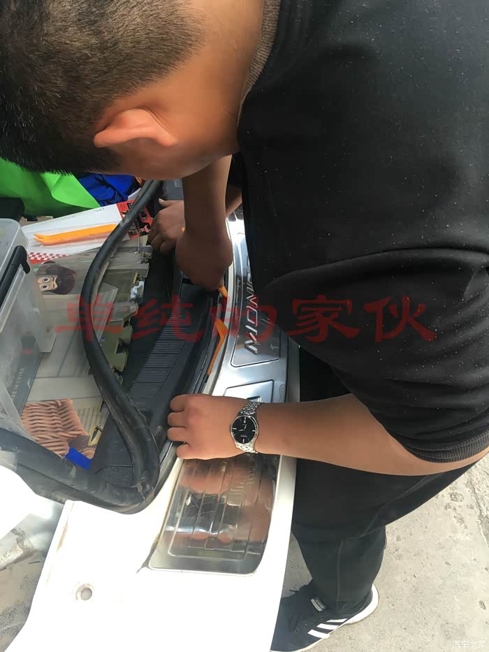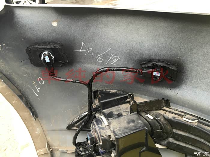 由于前后杠不是一天弄的,主要是自己弄太累了,隔了几天之后,开启了后雷达的安装,有人会问了,后面不是有雷达吗!对没错,有倒车雷达四个,没有侧面的泊车雷达,后面这两个其实可以不用装,可我就是想装上,任性!拆壳过程不在表述,就是这里比较难拆,其他地方,只要螺丝拆掉以后,用手拽啊拽,大力出奇迹!线束插头在车尾的右侧,注意一下就可以!
