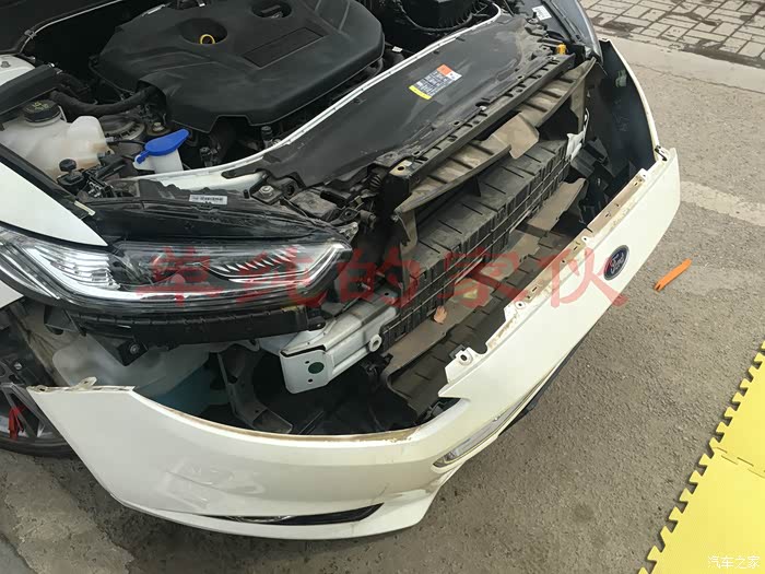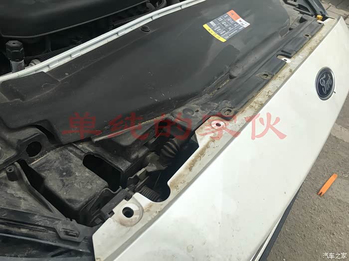 打开引擎盖,将前杠上的自攻螺丝和卡子拆掉。