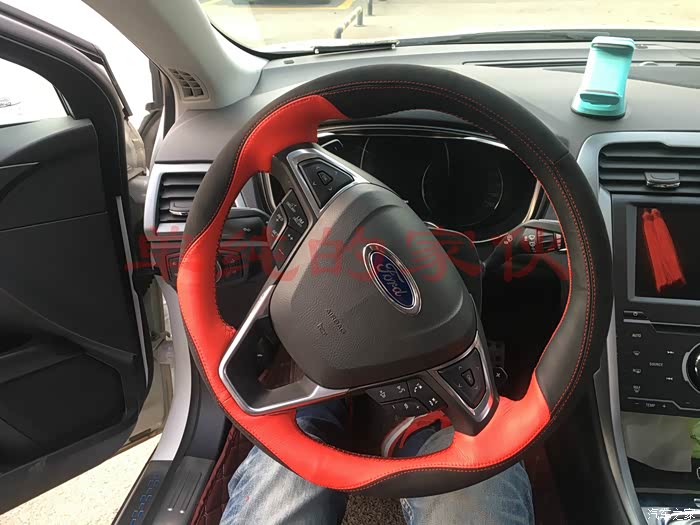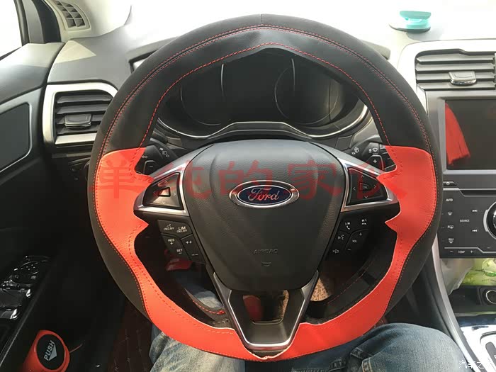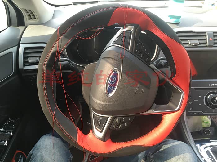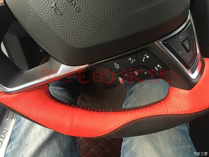 接下来。。。。方向盘套套!~为什么要加套,这个每个人的喜好不同,我纯粹是出于一个目的,我手大,感觉方向盘太细,握不住,加一层套可以厚一点,果真没让我失望,加了以后握这舒服多了,翻毛皮的,手感也很舒服!