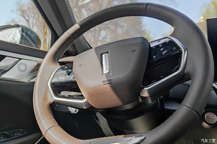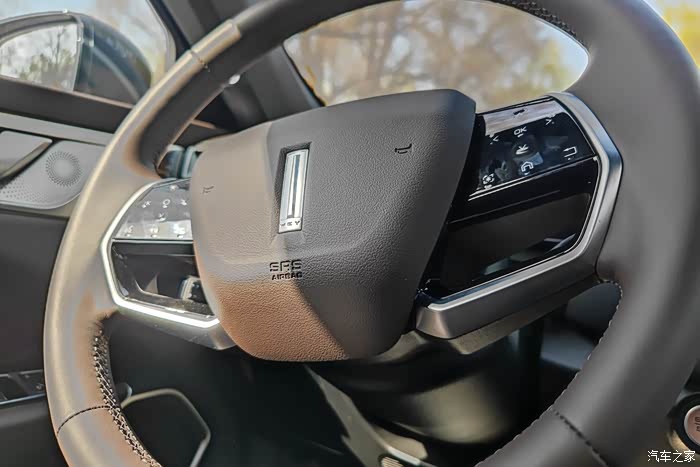 真皮的方向盘,两幅式的设计,看着挺时尚,且握感不错,转向也比较轻盈,指向性非常不错。
