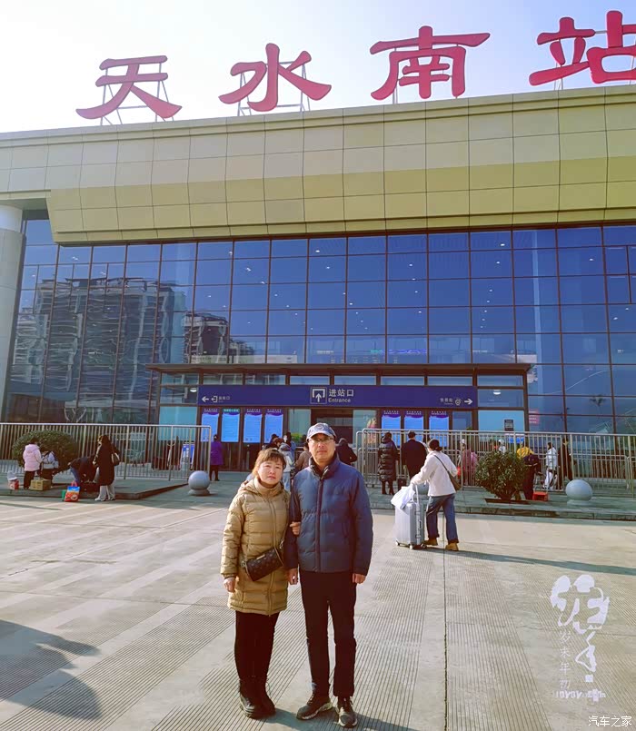 儿子儿媳送走了,我俩车站留张影,以之纪念。